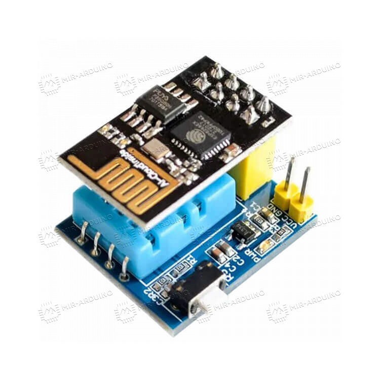 Датчик влажности и температуры DHT11 для DIY-проектов, умный дом, wi-fi ESP-01S предназначен для реализации умных климатических систем на платформе Ардуино. Работает на базе передающего устройства-контроллера ESP-01s и датчика DHT11, который собирает данные. Имеет небольшие размеры, поэтому легко интегрируется в любые климатические системы. Работает от 3,5-5,5 В, на плате есть стабилизатор напряжения. Есть кнопка перезагрузки микроконтроллера RESET. Измеряет влажность от 20% до 80% с погрешностью менее 5%, а также температуру от 0°С до 50°С с точностью до 2°С.
